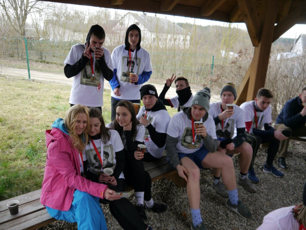 Naszą szkołę reprezentowali: Gabriela Twarowska, Kamila Małyszczuk,  Marta Weremijewicz, Patrycja Oksztul, Blanka Walkowicz, Diana Terebun, Natalia Tomczuk, Beata Przesmycka,  Dominika Dolińska, Aleksandra Olszewska,  Gabriela Wiśniewska,  Agata Bajena, Oliwia Wasilewska,  Julia Górska, Marlena Tararuj, Weronika Stypułkowska, Patrycja Szyszko, Małgorzata Panasiuk, Katarzyna Lachowicz, Wiktor Daciuk, Aleks Śmiechowski, Jakub Szyszko, Norbert Tarasiuk, Jakub Zieniuk, Sylwester Kałucki, Mateusz Jabczyk, Grzegorz Tyborowicz, Jakub Gołubkiewicz, Michał Mudel, Sebastian Nogieć  oraz  Pani dyrektor  Bożena Krzyżanowska, nauczyciele Iwona Hapanowicz-Charko, Wojciech Zieleniewski i Cezary Kudelski. Każdy uczestnik otrzymał pamiątkowy medal i okolicznościową koszulkę z grafiką o tematyce Żołnierzy Wyklętych oraz pakiety patriotyczne. Pomimo mroźnego dnia  panowała gorąca atmosfera, a wojskowa grochówka i gorące napoje smakowały wyśmienicie.