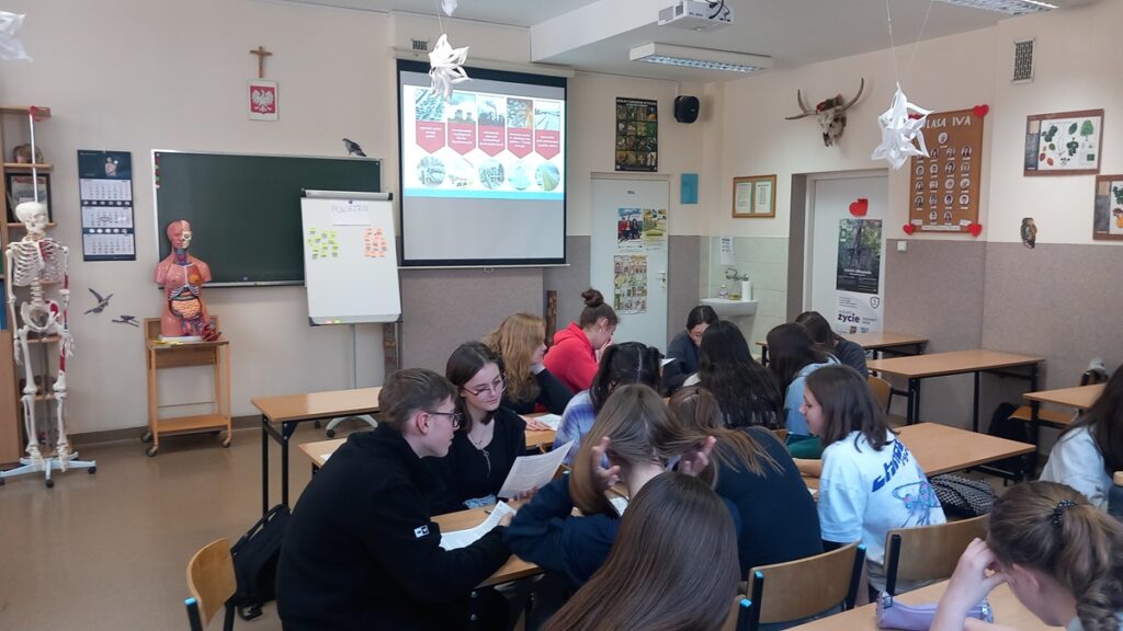Młodzież pracowała metodami aktywnymi pod czujnym okiem prowadzącej szkolenie nauczycielki biologii- pani Małgorzaty Sawczuk. Metody i formy pracy oraz wykorzystanie zakupionych w ramach dofinansowania pomocy dydaktycznych sprzyjały realizacji celów, rozbudzały wśród uczniów ciekawość poznawczą i skłaniały do przemyśleń nad poruszanymi problemami.