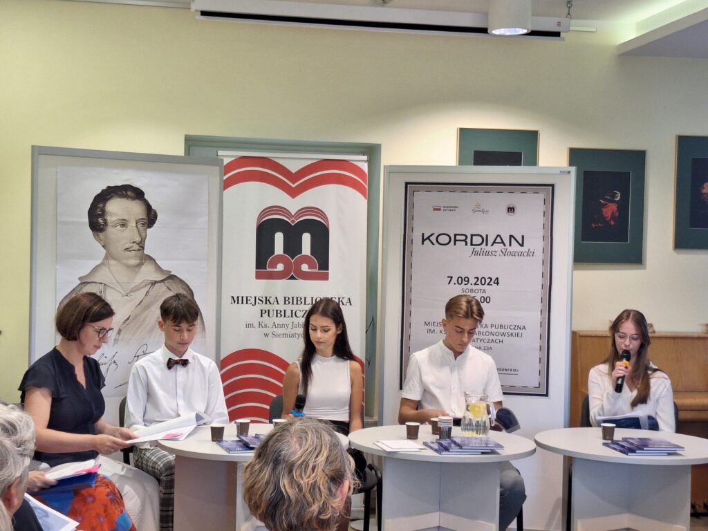 Uczniowie i nauczyciele naszej szkoły włączyli się również w ogólnopolską akcję Narodowego Czytania, która miała miejsce w sobotę 7 września 2024 roku. W Miejskiej Bibliotece Publicznej w Siemiatyczach fragmenty „Kordiana” czytali: mgr Edyta Niewińska, Urszula Owczarska, Angelika Panasiuk, Krzysztof Jóźwiak i Gabriel Sawczuk.